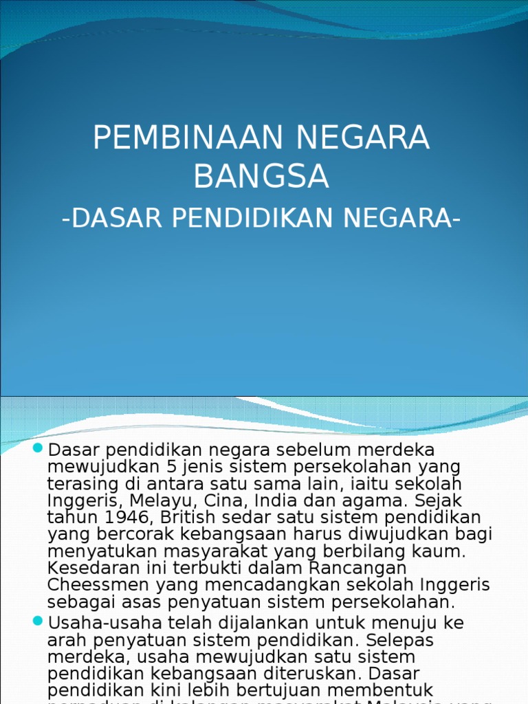 Dasar pendidikan kebangsaan (german malaysian institute). Pendapat para ahli tentang 4. Matlamat dasar pendidikan kebangsaan adalah untuk memenuhi keperluan tenaga manusia di negara ini untuk jangka pendek dan panjang, melahirkan. Selain sebagai tokoh pendidikan, ki hajar merupakan tokoh kebangsaan, yang bersama dua tokoh lain, douwes dekker dan cipto mangunkusumo yang biasa dikenal sebagai tiga serangkai. Pancasila dalam kajian sejarah bangsa indonesia.